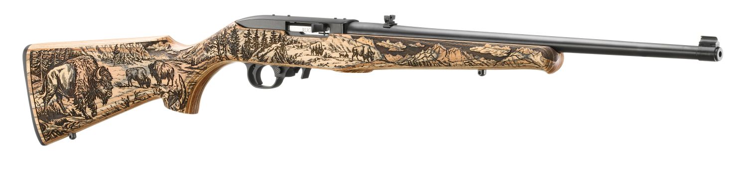 Ruger, MFG# 31234, UPC: 736676312344, UOM: EA, 10/22 .22LR, 18.5″ Barrel, Engraved Bison Scene, Natural/Blue, Laminate Stock, 10-rd TALO, RUGE, RUGELG05, RUGELGALL, LG05, LGALL