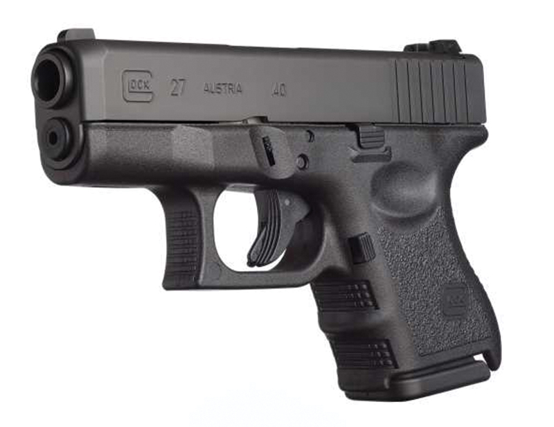 Glock, MFG# PI2750201, UPC: 764503275029, UOM: EA, G27, 40 S&W, 3.5″ Barrel, Fixed Sights, Black, 2 9-rd Mags, GLOC, GLOCHG10, GLOCHGALL, HG10, HGALL