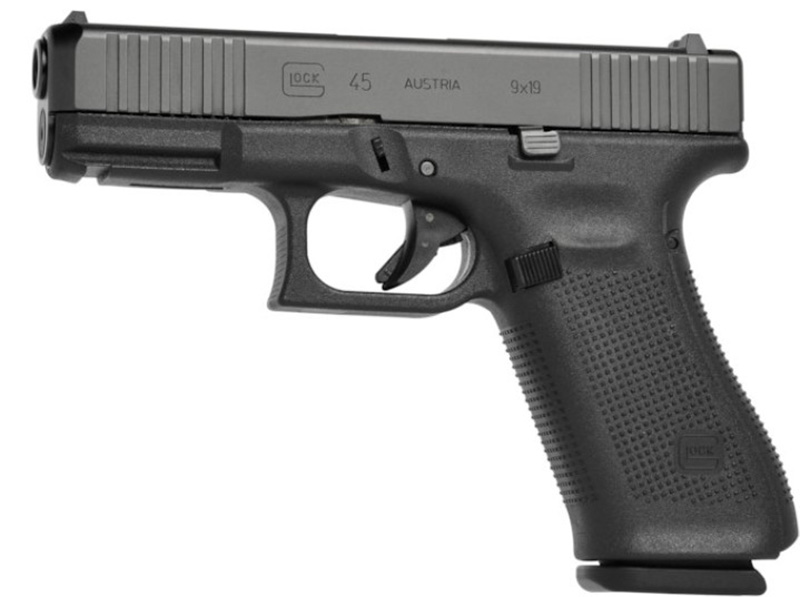 Glock, MFG# UA455S201, UPC: 764503033636, UOM: Each, Glock 45 Gen 5 9mm, 4″ Barrel, Black 10-rd, GLOC, GLOCHG10, GLOCHGALL, HG10, HGALL