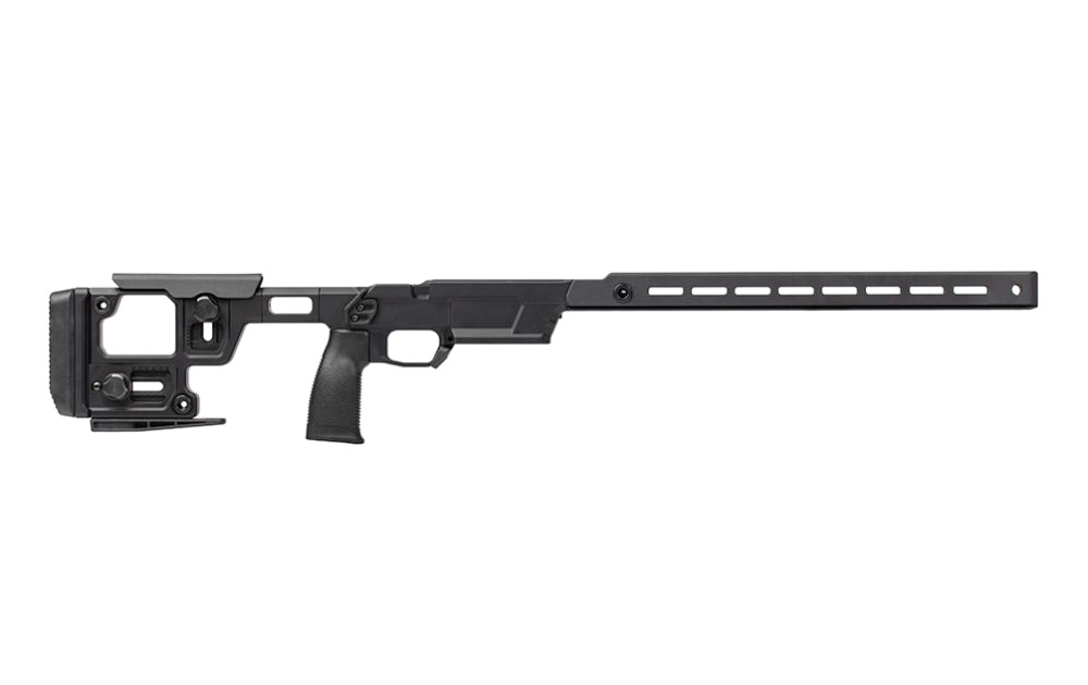 SOLUS Competition Chassis – The Solus Competition Chassis was designed to create the most precise and repeatable rifle to body connection. Modularity is another critical component of the Solus chassis a high focus on general ergonomics and adjustability ensures chassis fitment goes smoothly. Integrating industry-standard attachments like M-LOK and Arca Swiss allows a true custom experience no matter the intended use. – Chassis Center Section Features: – Remington 700 short action footprint – V-Block bedding surfaces to ensure consistent lockup among different manufacture actions. – Compatibility with AICS and AIAIW detachable box magazines – Ambidextrous magazine catch – Adjustable magazine catch (to accommodate for variances in magazine tolerances) – Adjustable thumb rest – Compatible with tangless AR15 pistol grips. – Machined from custom 7075-T6 aluminum forgings. – Forend Features: – Arca and M-LOK compatible forend with M-LOK slots at the 36 and 9 o’clock positions – 6 QD sling sockets – Compatible with Aero Precision’s optional night vision bridge and bipod spigot – Can accommodate up to 1.25 barrel diameters – Stock Features: – 7-position adjustable length of pull – Variable position adjustable cheek comb – Adjustable cant recoil pad – 5 QD sling sockets – Included bag rider