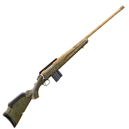 Ruger American Rifle Gen II Predator 6mm ARC 22″ Spiral Burnt Bronze Barrel; Green Splatter Gen II American Stock; 10rd Capacity; One Piece Picatinny Scope Base; 1 AR Style Magazine
