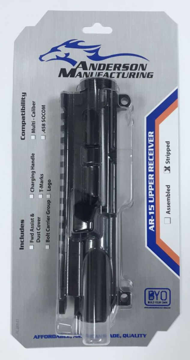 The AM-15 Stripped Upper Receiver is machined from 7075 T6 Aluminum forging. Featuring M4 feed ramps, this upper receiver is machined to Military Specifications & Standards and can be used with multiple calibers on the AR-15 platform. Technical Specifications Receiver Finish Type 3 Hard Anodized, Black Upper Receiver Material Forged 7075 T6 Aluminum Bolt Carrier Group NOT Included Charging Handle NOT Included Compatibility All AR-15 Calibers, EXCEPT .458 SOCOM Country of Manufacture USA UPC 712038922406