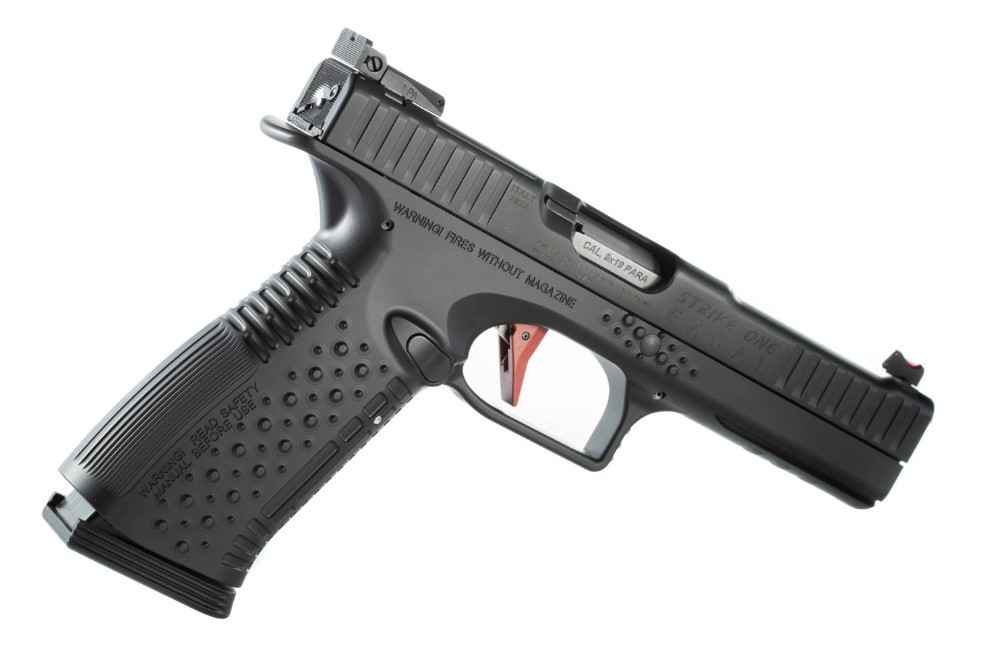 Manufacturer: Arsenal Firearms Importer: American Precision Firearms APF Country of Origin: Italy Series: Strike One Speed Ergal Finish: Black Caliber: 9mm Frame: Aluminum 7075 (Ergal) System: Speedlock Magazine Release: Oversized Sights: Rear: Adjustable – Front: Fiber Optic Optic Ready: Yes Trigger: Competition Flat Trigger pull: 5.29 Lbs Weight (empty magazine): 2.09 Lbs Barrel length: 5″ Dimensions: Length: 8.3″ – Width: 1.3″ – Height 5.63″ Magazine Capacity: 17