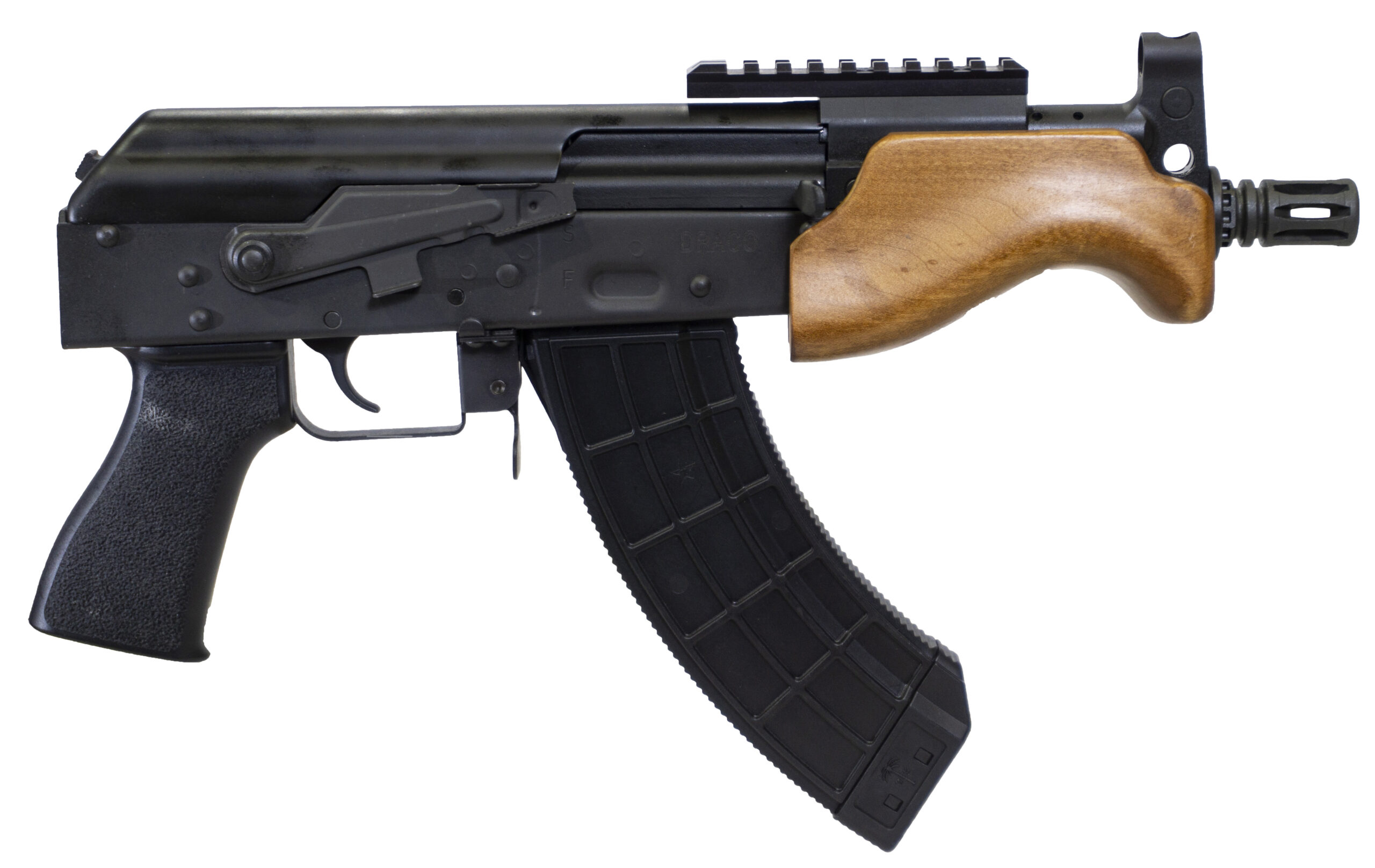 The Century Arms Draco Micro is a compact and powerful firearm designed for individuals who value portability and versatility. With its short barrel and lightweight design this firearm is ideal for personal defense outdoor activities and target shooting. Its semi-automatic action allows for rapid and efficient shooting while the ergonomic grip and adjustable sights provide accurate and comfortable handling. – Made from high-quality materials the Century Arms Draco Micro is a reliable and durable firearm that can withstand heavy use and adverse conditions. Its compact size makes it easy to carry and store while its versatile design allows it to be customized with a wide range of accessories and attachments. Whether you’re a seasoned shooter or a beginner the Century Arms Draco Micro is a reliable and high-performance firearm that will exceed your expectations. – Built in the US the Century Arms Draco Micro Pistol is chambered in 7.62x39mm features a 6.25 barrel and includes one US Palm 30-round magazine. This compact package comes with an Enhanced Trigger Group Threaded Barrel to attach your desired muzzle device non-adjustable style AK rear Sight and adjustable front post and Premium Handguards. Coming in at an unloaded weight of 4.85lbs the MICRO DRACO is the smallest configuration offered in the AK platform. – Brand: Century Arms – Model: Draco Micro – Capacity: 30+1 – Muzzle: Muzzle Brake – Grips: Black Polymer – OAL: 14.50 – Receiver Material: Steel Stamped – Safety: Lever – Thread Pattern: 14×1 LH – Twist: 1:10 – Weight: 4.85 lbs