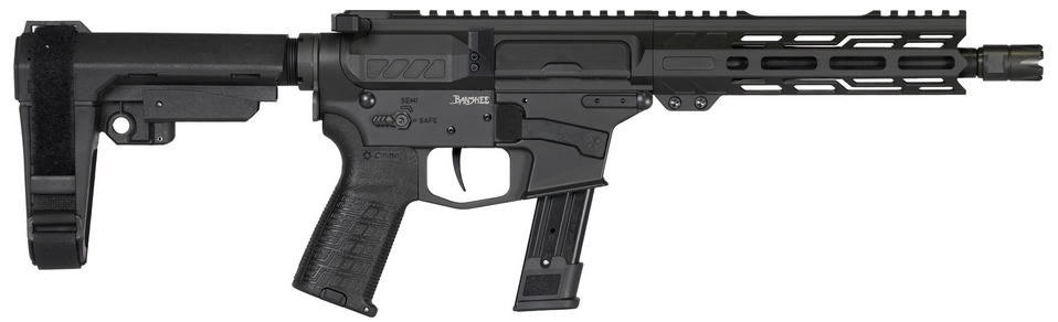 Following the adoption of the Sig Sauer P320 as the M17 and M18 by the US military shooters all over have been asking for a pistol caliber carbine that uses P320 mags. Not only can you switch magazines from BANSHEE to handgun seamlessly you also retain full AR15 functionality in the Mk17. – Platform Mk17 – Caliber 9mm – Operating System Radial Delayed Blowback – Barrel Length 8 – Barrel Twist 1:10 – Barrel Contour MT – Barrel Material 4140CM SBN – Barrel Twist 1:10 – Muzzle Device CMMG ZEROED Linear Compensator – Muzzle Thread 1/2 x 28 – Upper Receiver Billet 6061 T6 Aluminum – Lower Receiver Mk17 Forged 7075 T6 Aluminum – Hand Guard CMMG EML7 M-LOK – Finish Cerakote Standard – Charging Handle CMMG ZEROED Ambi – Pistol Grip CMMG ZEROED Pistol Grip – Buffer Type Carbine – Receiver Extension CMMG 6 Position Fastback Extension – Stock / Brace CMMG RipBrace – Trigger Type ZEROED Drop-In Single Stage – Trigger Guard Integrated – Safety Selector CMMG ZEROED 60/90 Degree – Magazine Sig Sauer P320 21rd – Weight 5.3 lbs – Length 23.7