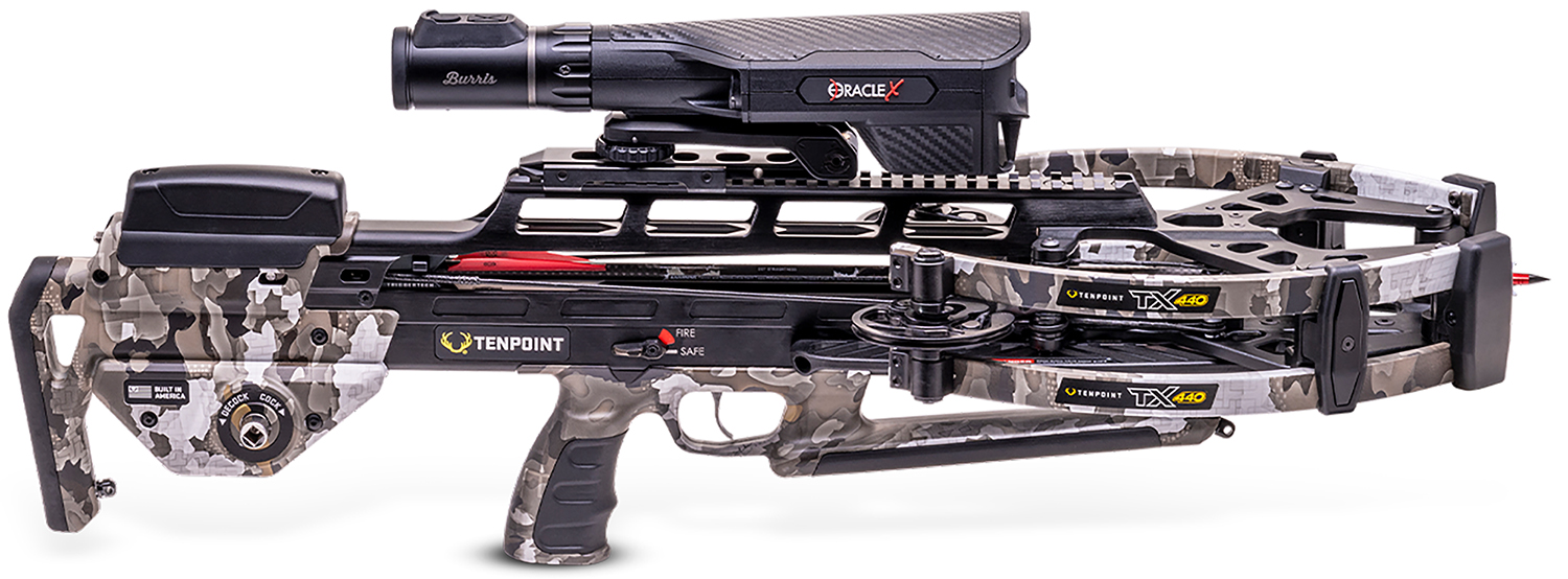 Meet the fastest, most accurate, and most technologically advanced crossbow the world has ever seen – the TX 440 from TenPoint. The TX 440 shoots 440 FPS and features NEW Twin-Riser Technology that riser flex and limb torq for greater down-range accuracy. Package Includes: EVO-X Marksman Elite Scope 3.0 (100-yard), ACUslide MAXX, 3 CenterPunch HPX Carbon Arrows, Integrated String Stop,Bow Hook,Quiver