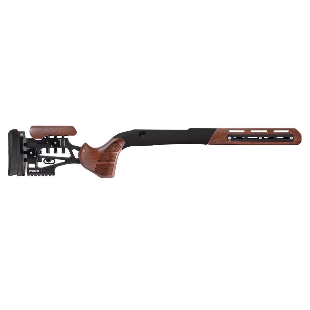 The WOOX Furiosa stock is a groundbreaking high-performance aftermarket replacement chassis. This high-tech hybrid stock combines wood sections over a full-length aerospace grade aluminum skeleton chassis giving it the “feel” of a wood stock with the strength and stability of a metal stock. The proven improvements in both accuracy and shot-to-shot consistency proves the Furiosa to be a critical upgrade for serious hunters and shooters.